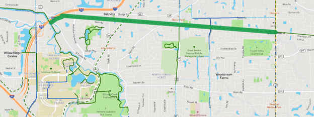 Proposed trail to close the Gap between the Ellicott Creek Trailway West, in Getzville and the Peanut Line Trail East, in East Amherst. See; Map Below.