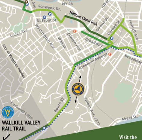 To Start from Kingston [Northern End]; From I-87 take exit 19 to I-587 E to its end. Continue straight onto Route 32 (Broadway) and then right (Henry St) continuing along Route 32. Left on Fair St/right on Blvd (still Route 32). After 1.2 miles turn right on Rockwell Lane and you'll come to the trail and parking lot.